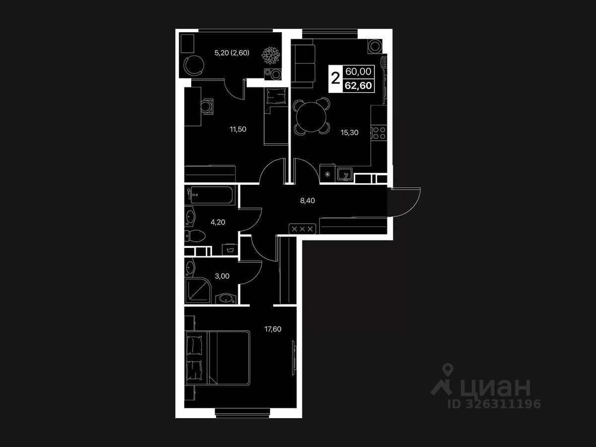 ДВУХКОМНАТНАЯ КВАРТИРА Идеальный формат для семьи или тех, кто ценит пространство: — Большая кухня-гостиная — Отдельная спальня — Возможность выделить рабочую зону — Тишина, тепло, удобная планировка — Большие окна и много света