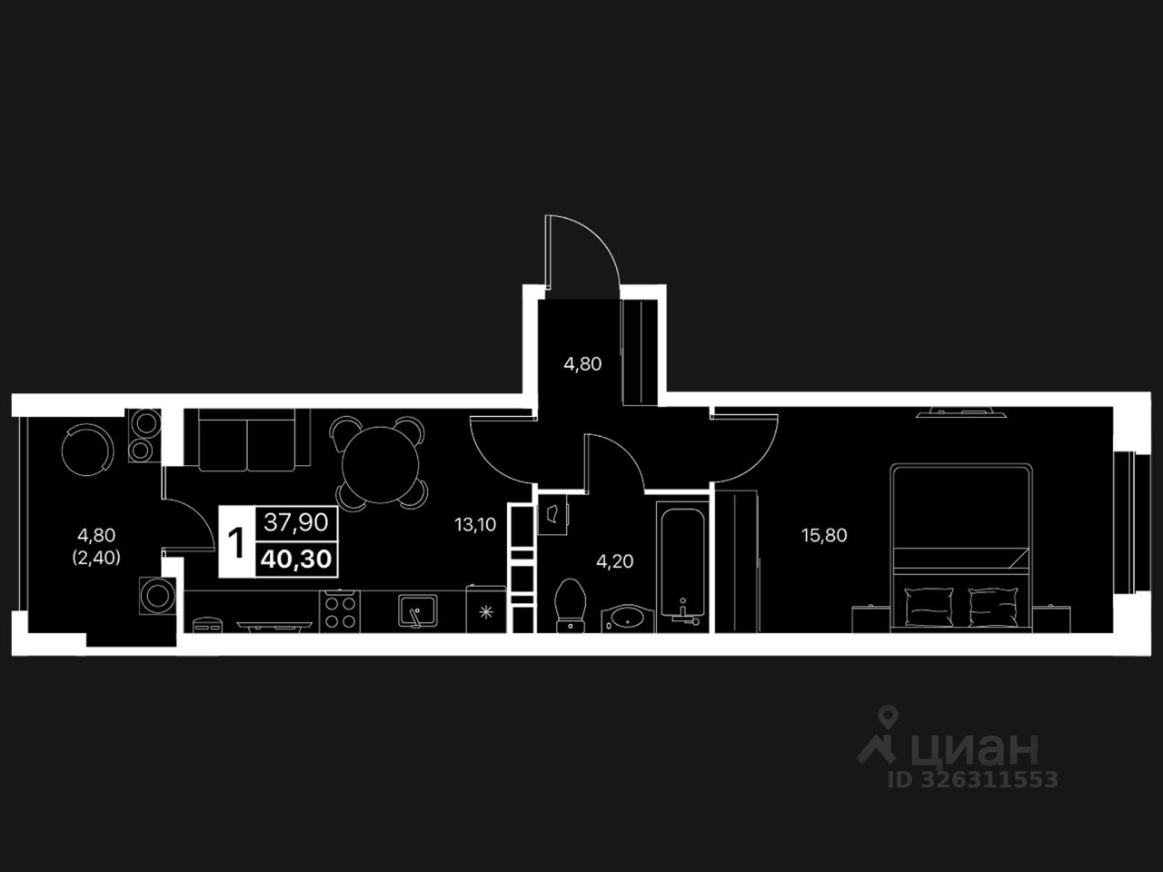 Общая площадь40,3 м2