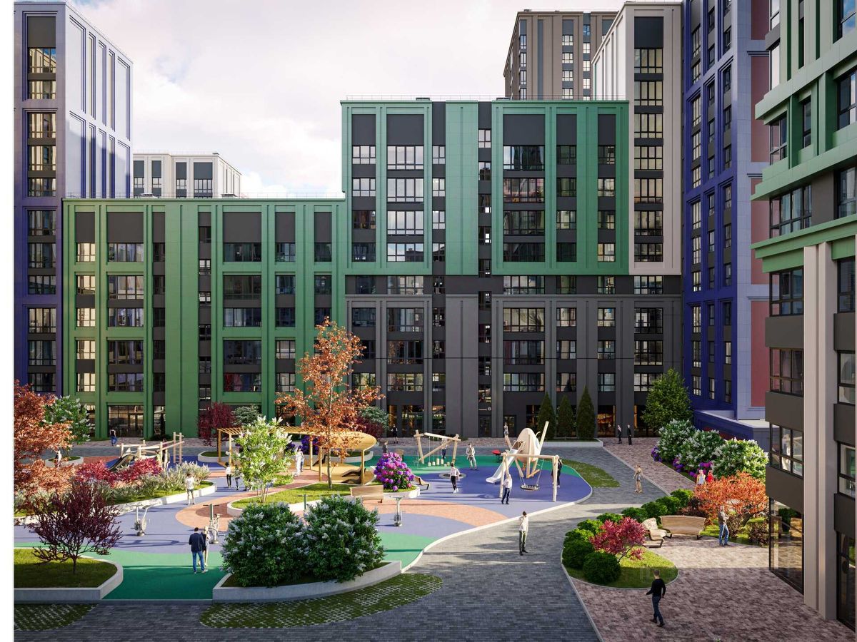 Социальная инфраструктура: — Школа на 1 800 мест в составе проекта, — Детский сад на 300 мест, — Дворец культуры, IT-школа, торговые зоны, — Парки, скверы и площадки — всё рядом.