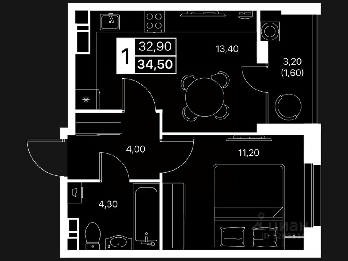 Общая площадь34,5 м2