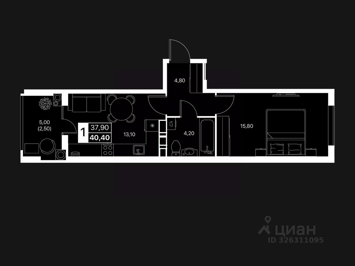 Общая площадь40,4 м2