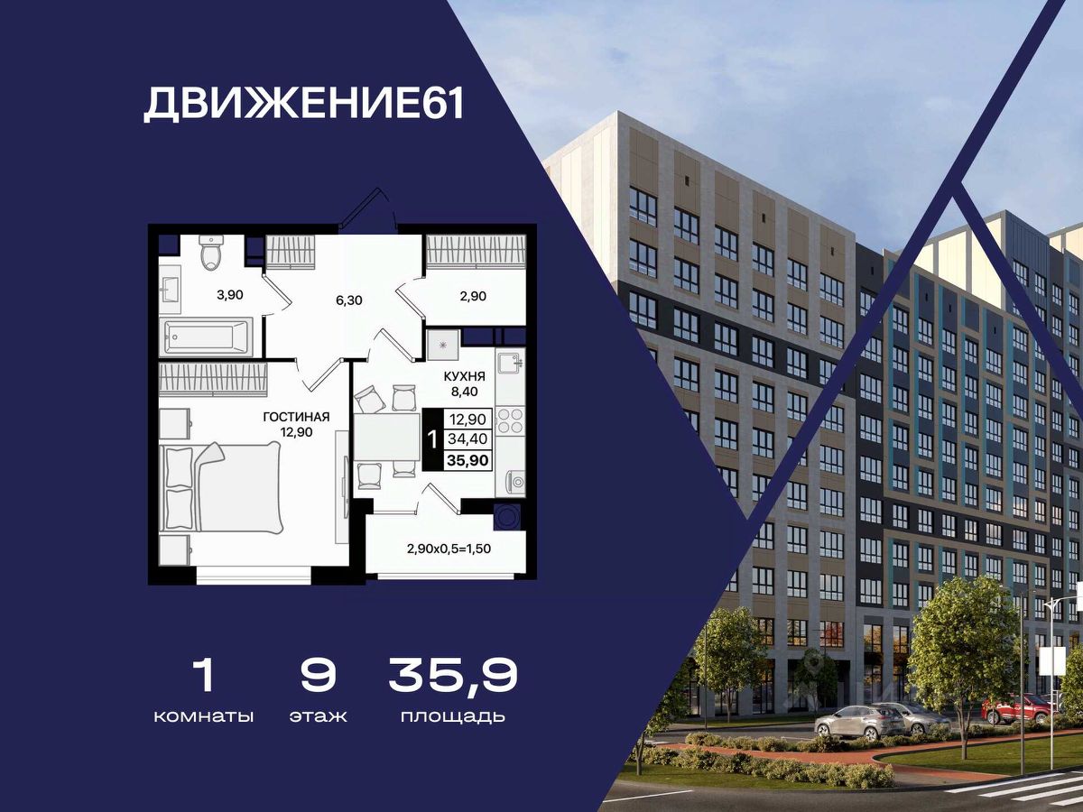 1-комнатная квартира в ''Движение61'' — удобный старт, разумная цена и благоприятный район для жизни!