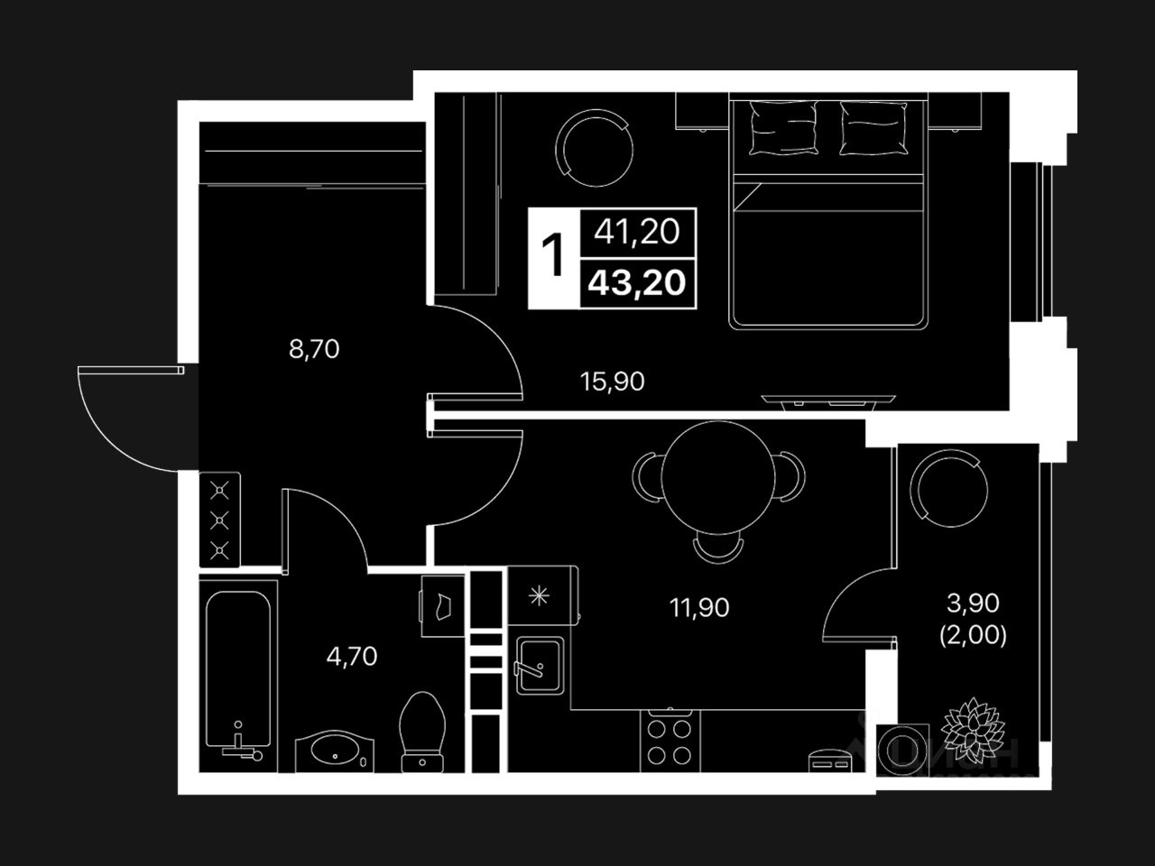 Общая площадь43,2 м2