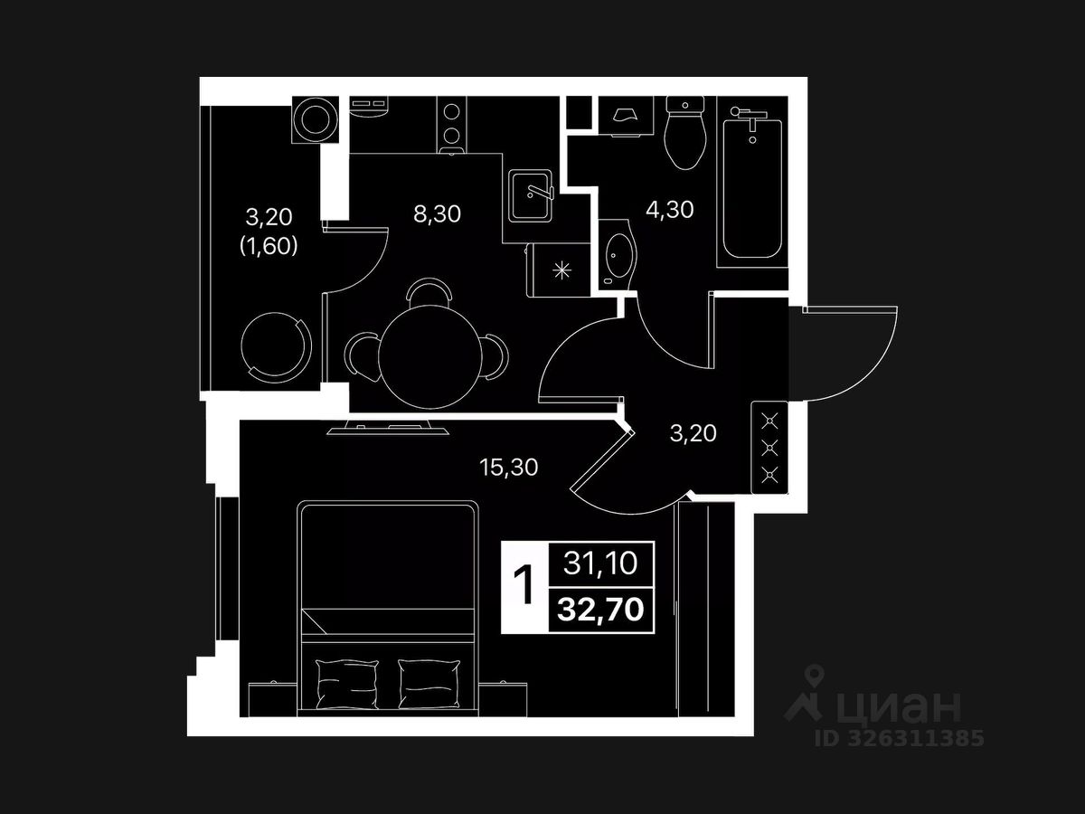 Общая площадь32,7 м2