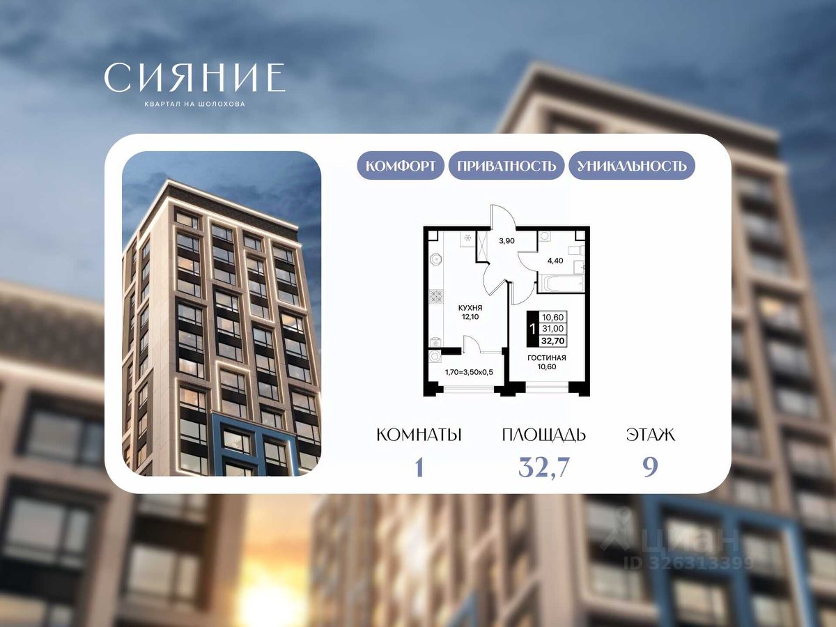 Продаётся уютная 1-комнатная квартира в новом квартале ''Сияние'' от федерального застройщика ''ЮгСтройИнвест''.