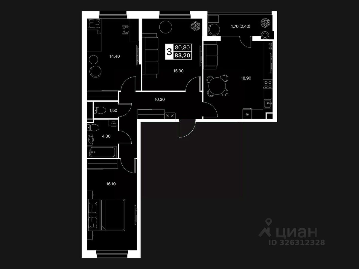 Общая площадь83,2 м2
