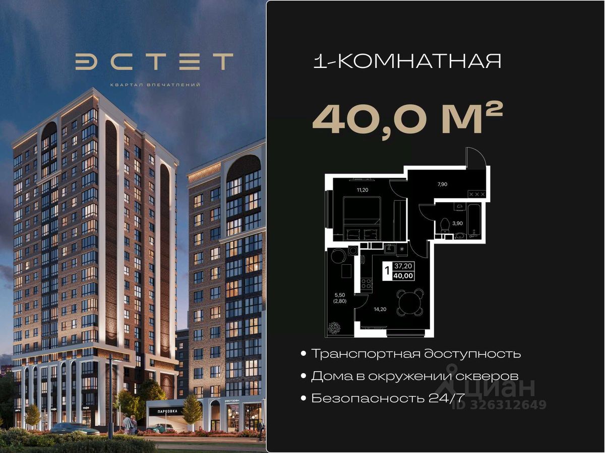 1-комнатная квартира в ЖК ''Эстет'' — современное жилье с выгодой от надежного застройщика ЮгСтройИнвест.