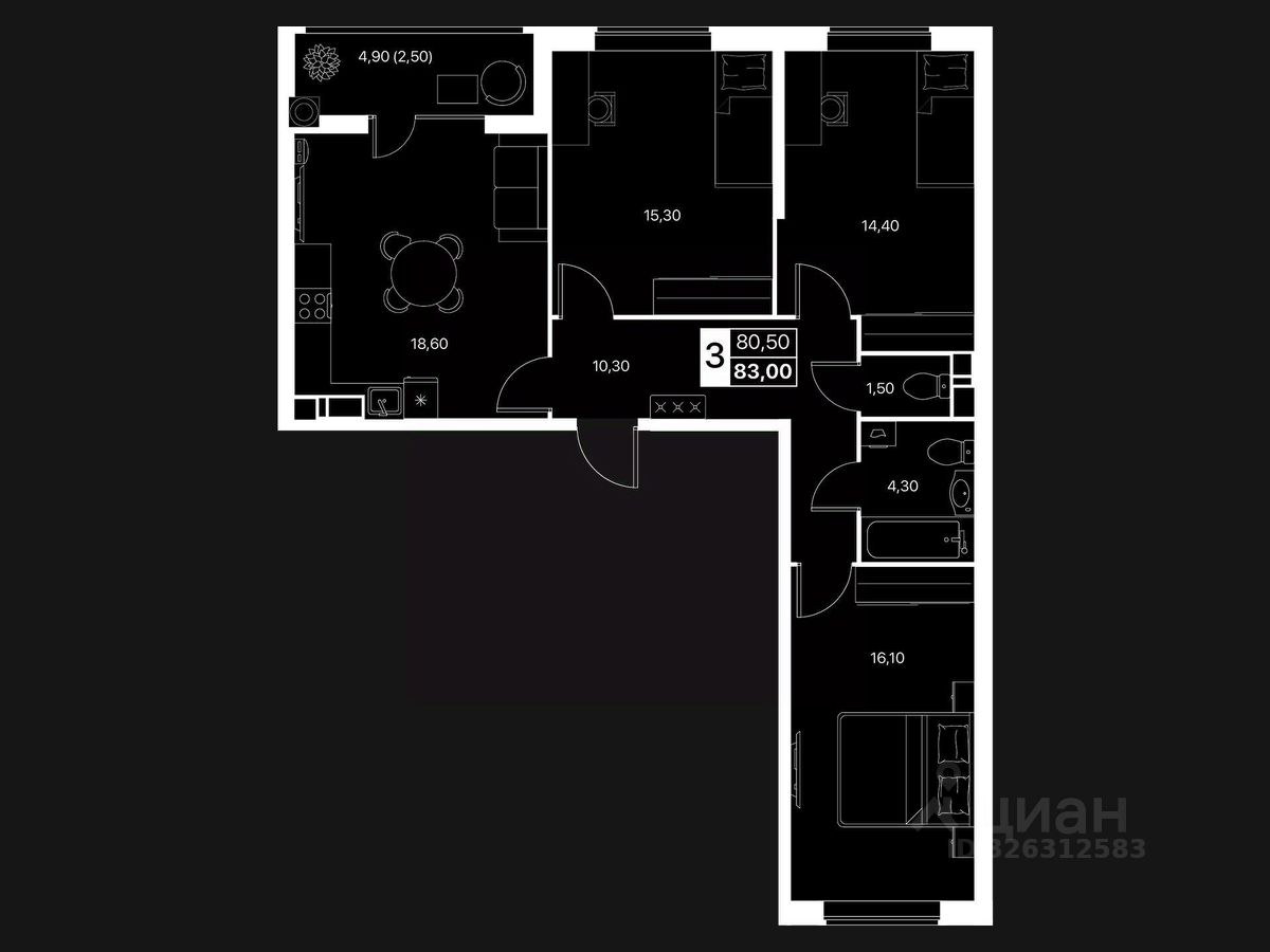 Общая площадь83 м2