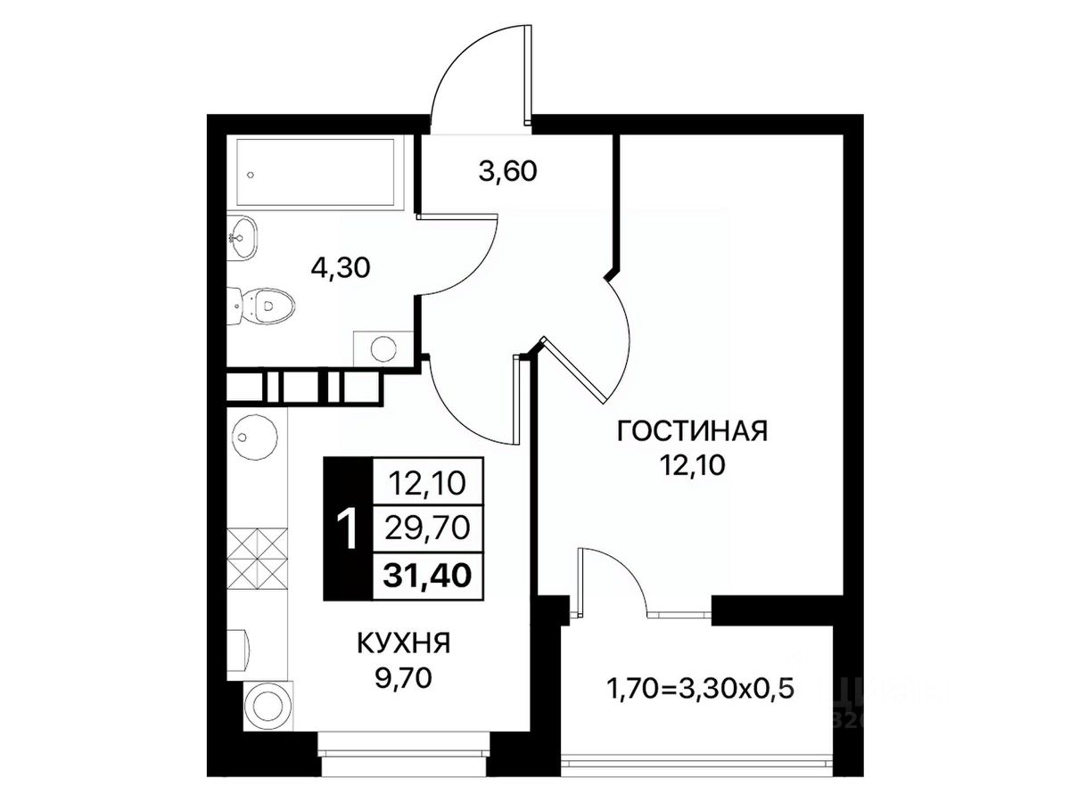 продам 1-к, Берберовская, 1/26 813 800 ₽