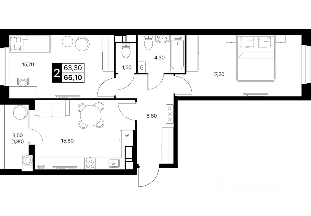 Общая площадь65,1 м2