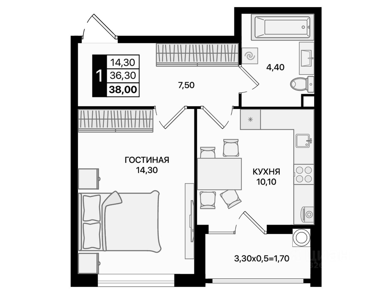 Общая площадь38 м2