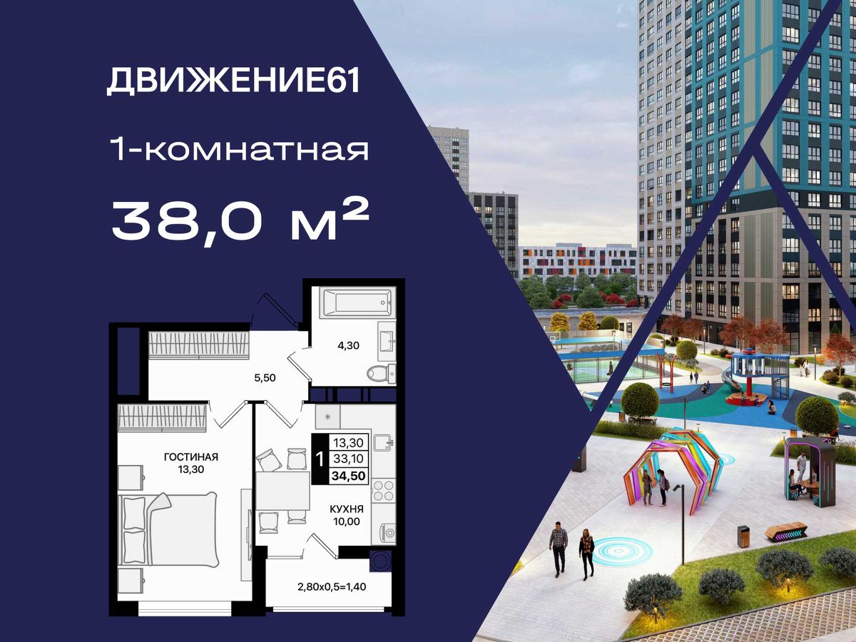 1-комнатная квартира в новом квартале ''ЖК Движение 61'' | Лучшая локация | Цены растут каждый год!
