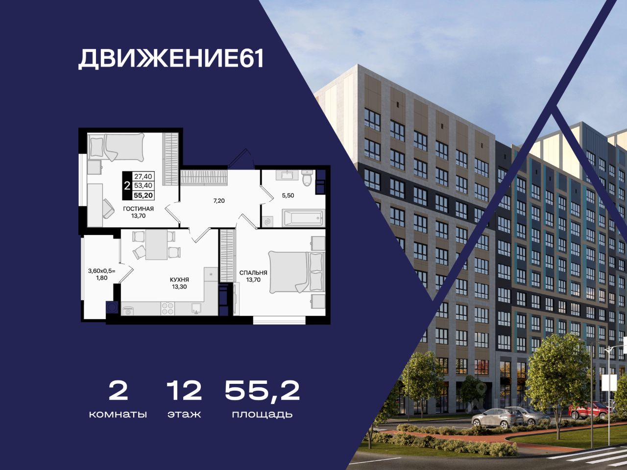2-комнатная квартира в ''Движение61'' — удобный старт, разумная цена и качественный район для жизни.