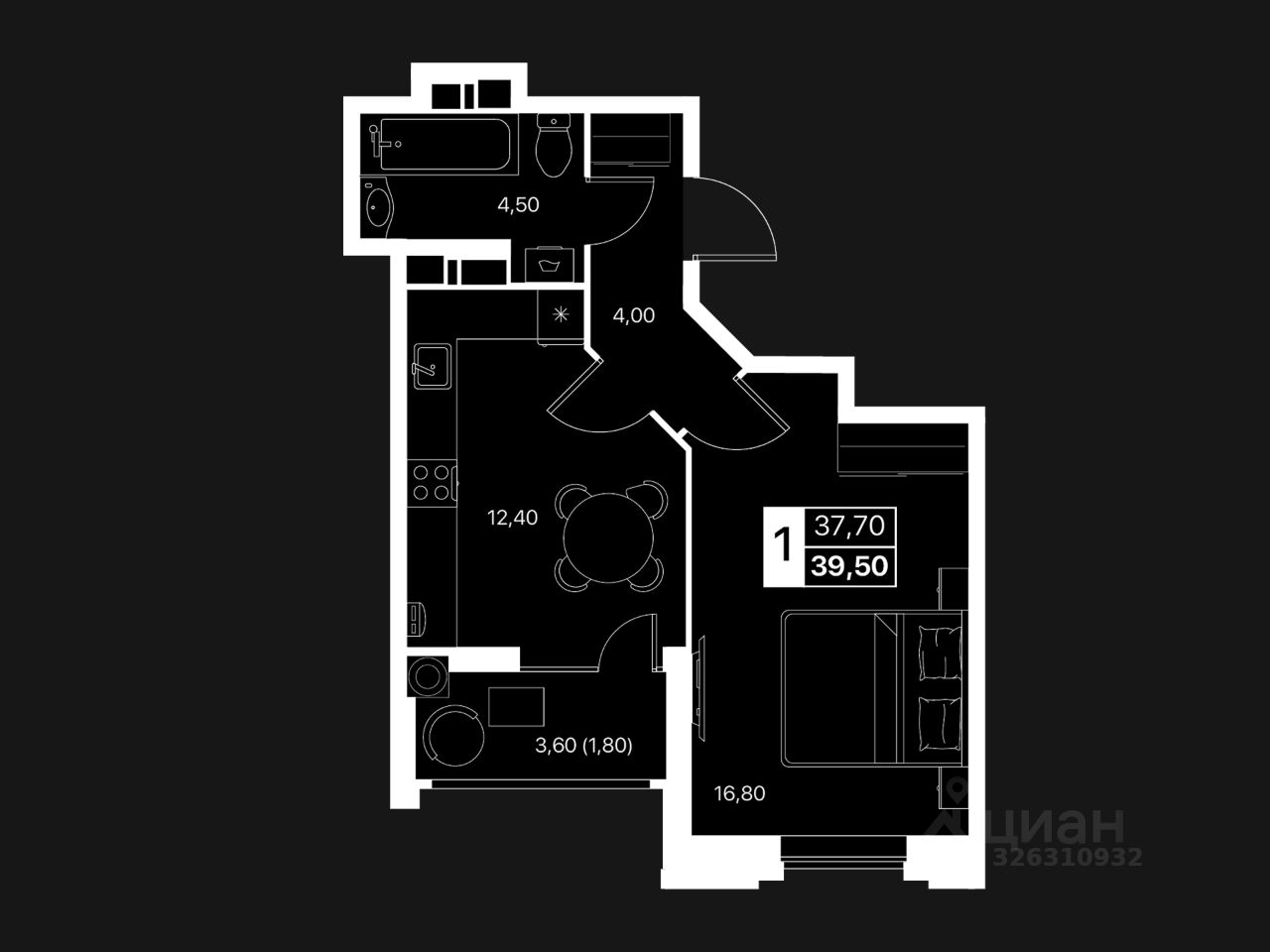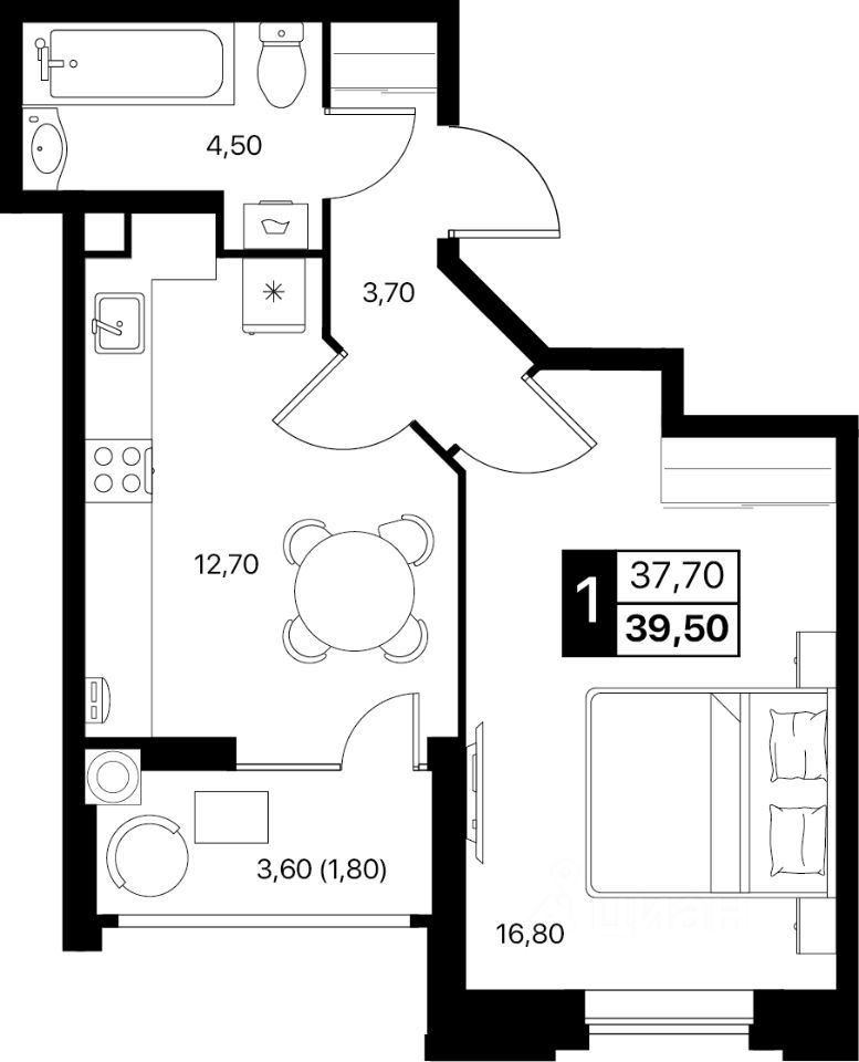 Общая площадь39,5 м2