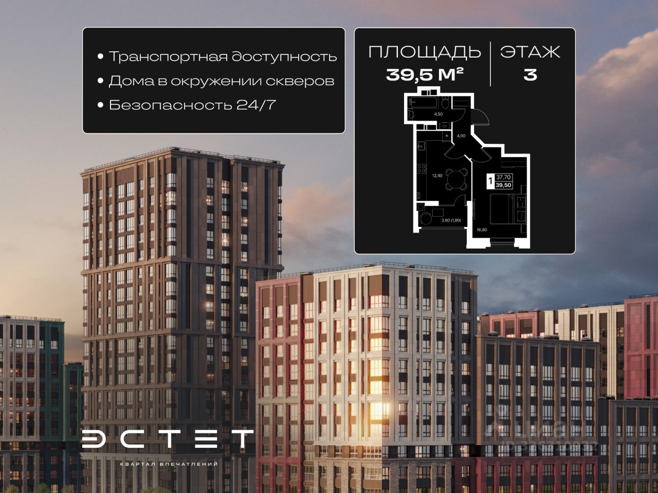 О жилом комплексе ''ЭСТЕТ'': — 7 уникальных зон, каждая со своей идеей и настроением, — Премиальные вентилируемые фасады, — Красивые дизайнерские холлы и продуманные входные группы, — Коммерция на первых этажах: кофейни, магазины, сервисы.