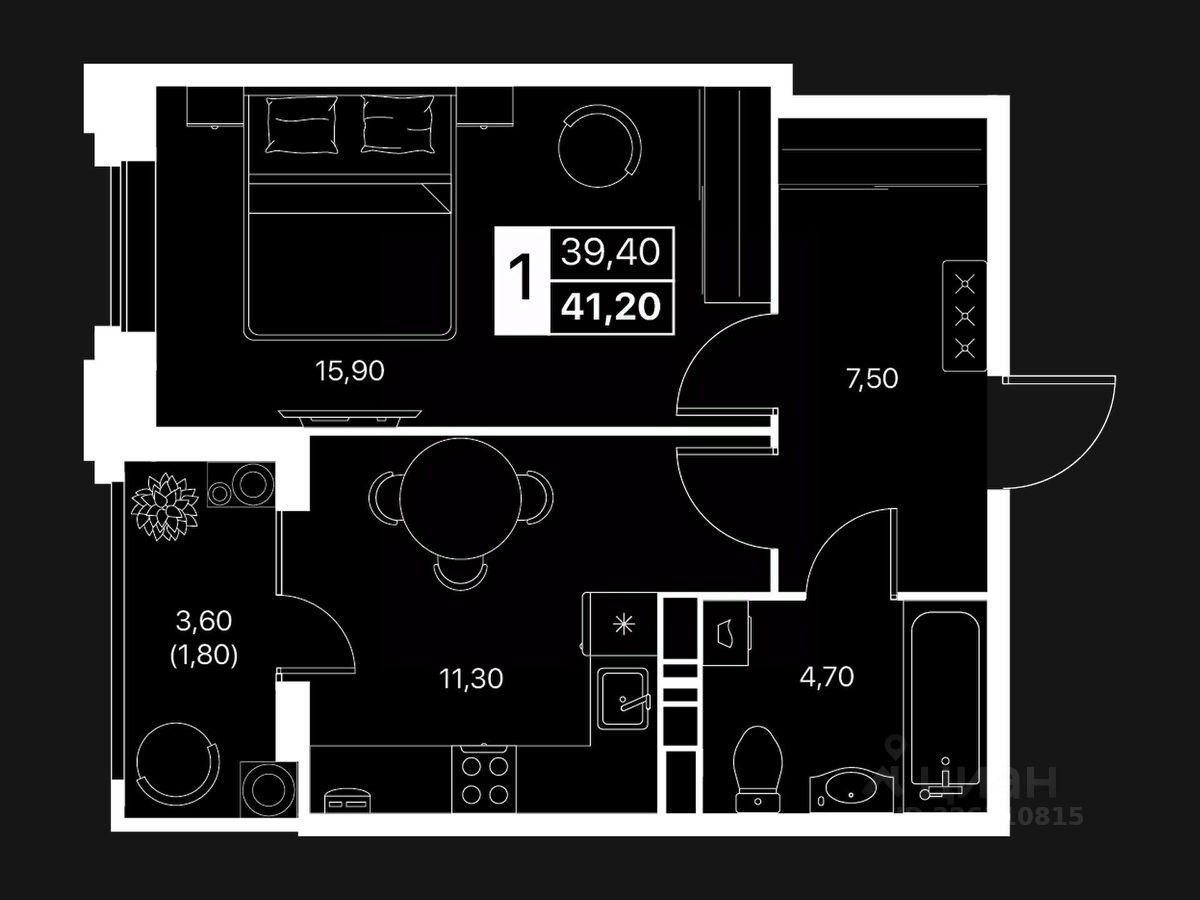 Общая площадь41,2 м2