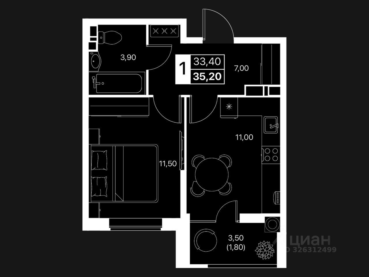Общая площадь35,2 м2