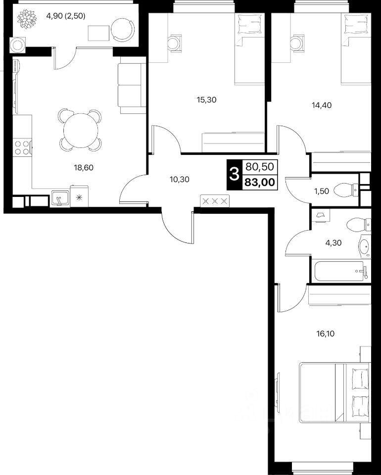 Общая площадь83 м2