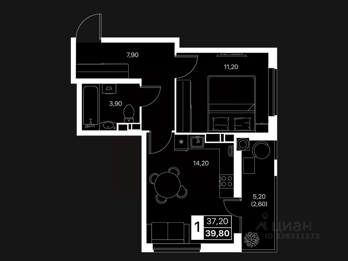 Общая площадь39,8 м2