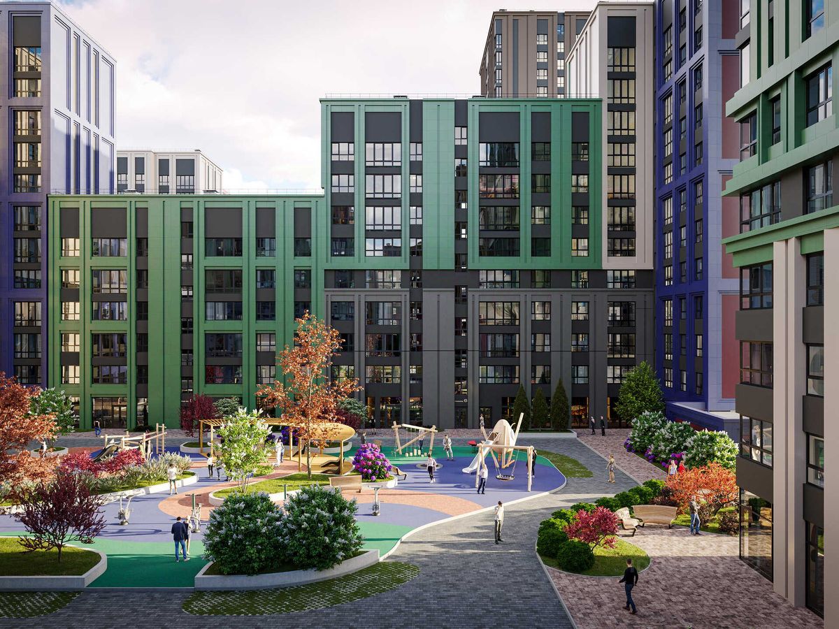 Социальная инфраструктура: — Школа на 1 800 мест в составе проекта, — Детский сад на 300 мест, — Дворец культуры, IT-школа, торговые зоны, — Парки, скверы и площадки — всё рядом.
