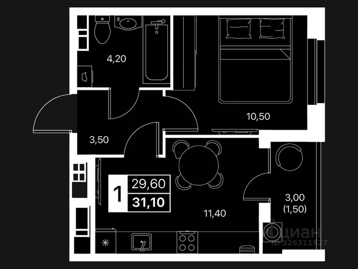 Общая площадь31,1 м2