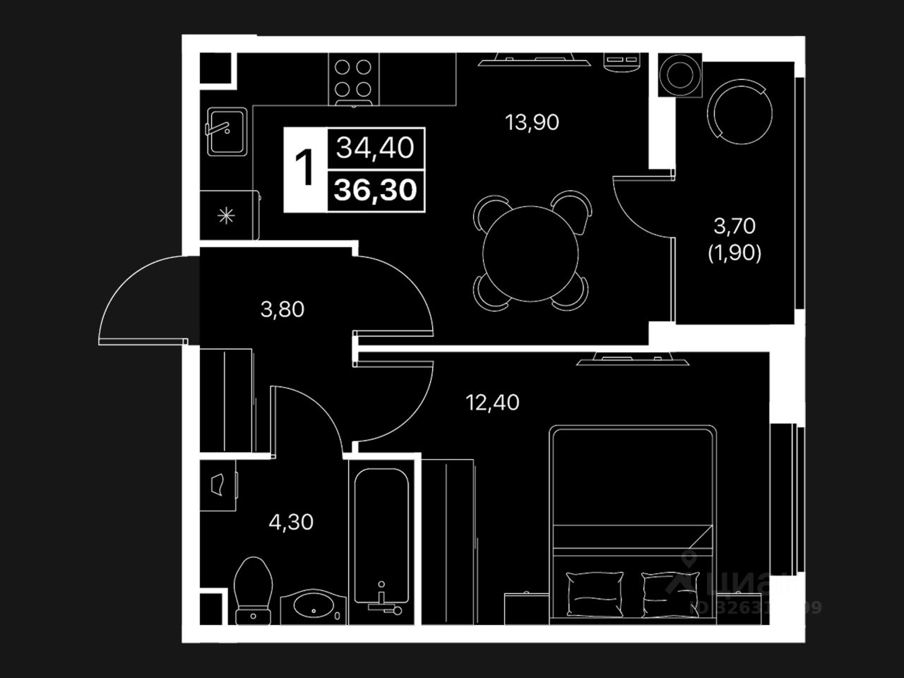 Общая площадь36,3 м2