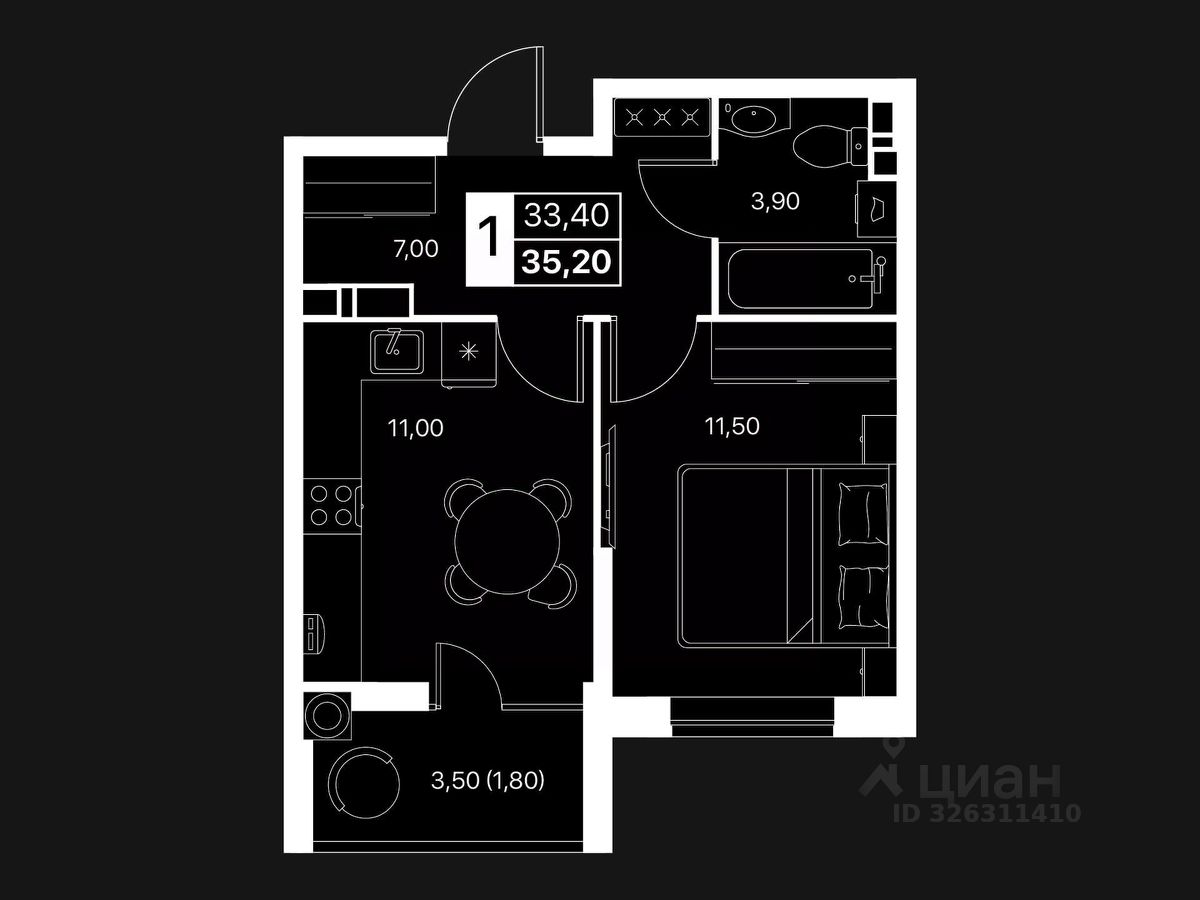 Общая площадь35,2 м2