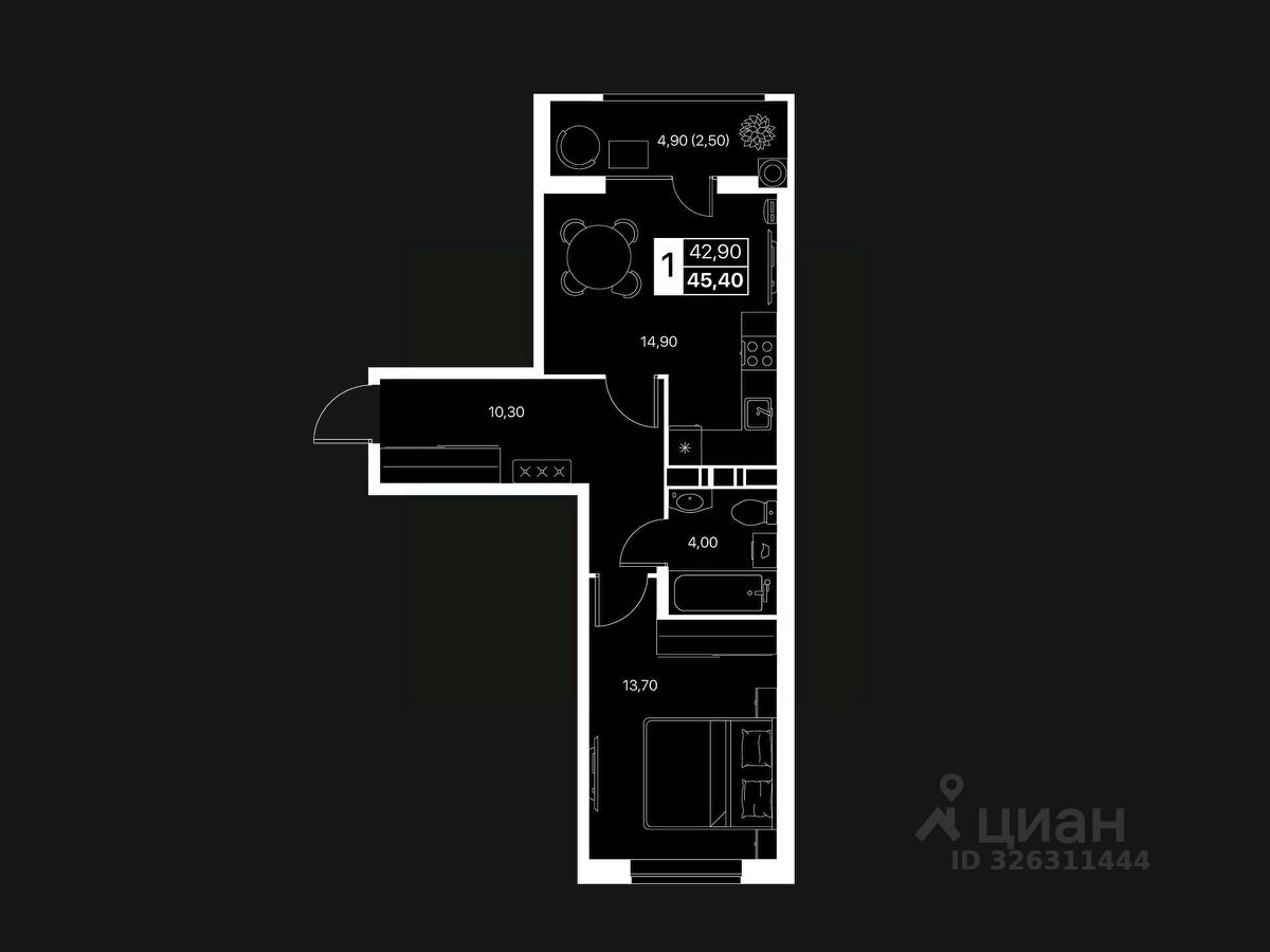 Площадь и формат: — Сбалансированный формат: достаточно просторно для одного человека или пары, при этом разумная цена. — Современная планировка, витражное остекление, светлые комнаты и просторная кухня-гостиная — всё, чтобы жить удобно и с комфортом.