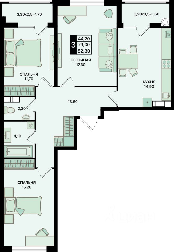 Общая площадь82,3 м2