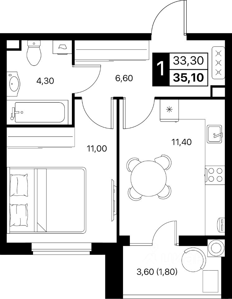 Общая площадь35,1 м2