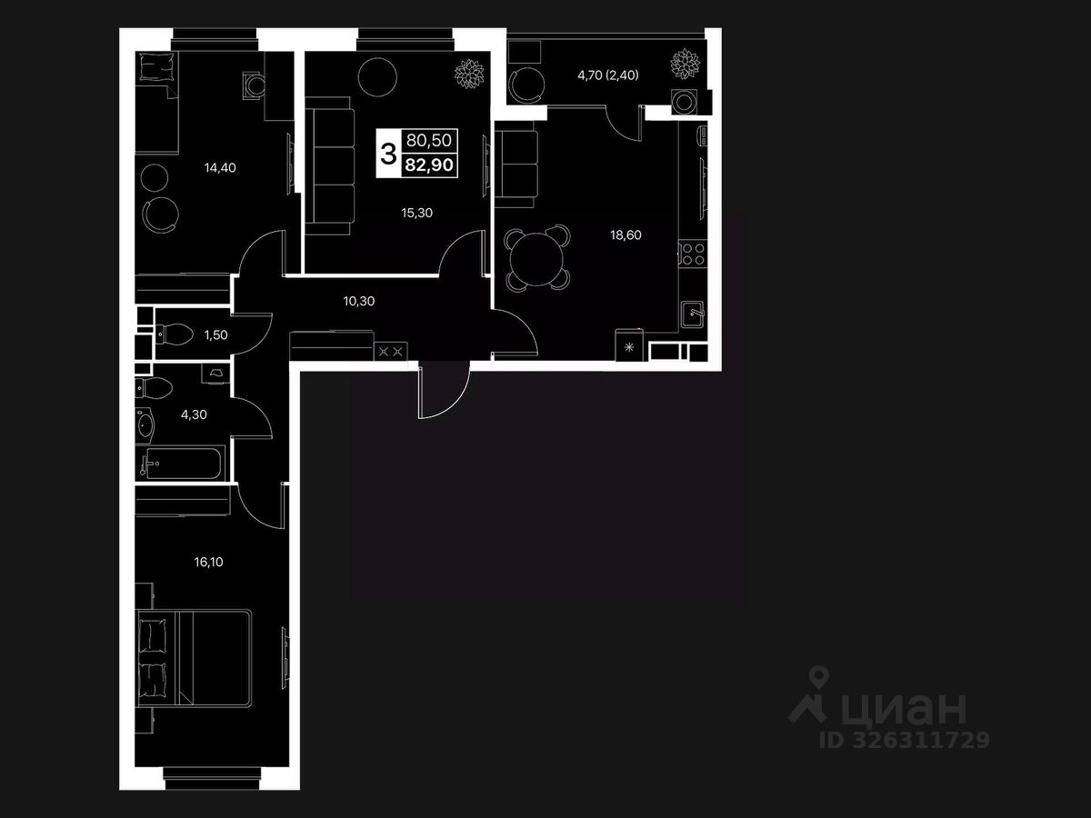 Общая площадь82,9 м2