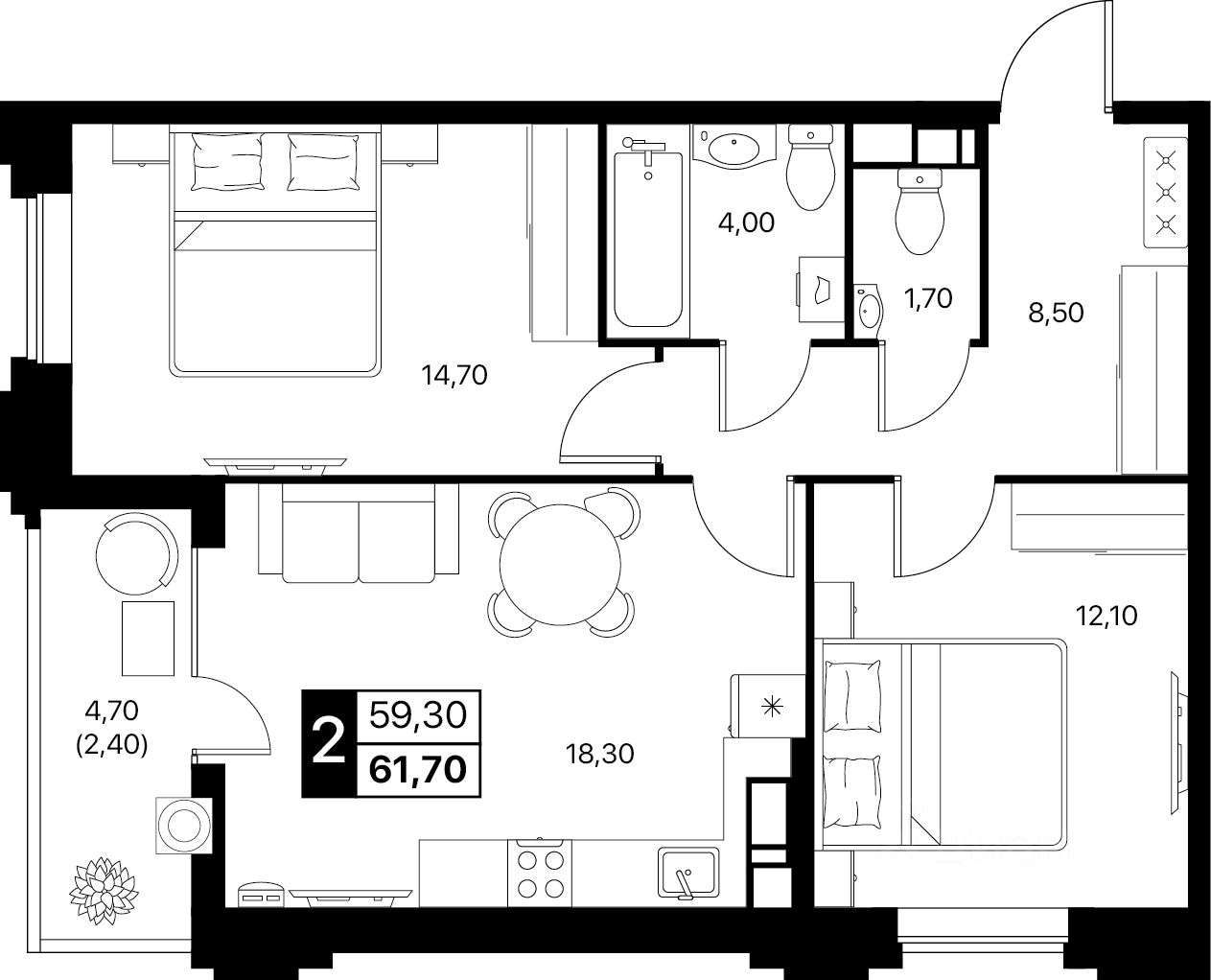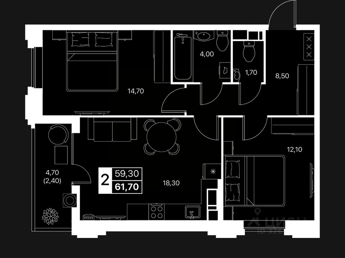 Общая площадь61,7 м2