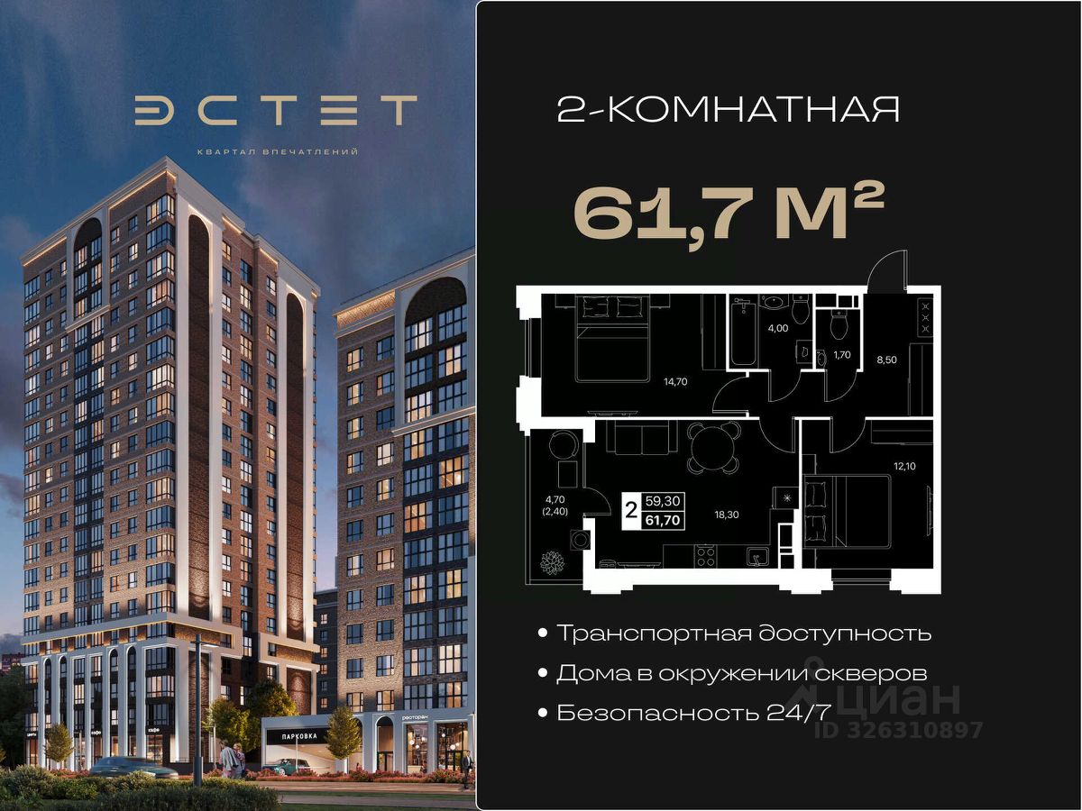 О жилом комплексе: ЖК ЭСТЕТ — квартал впечатлений — это продуманный проект комфорт-класса на территории бывшего Аэропорта. Квартал площадью 18,85 га включает 7 жилых кластеров и 14 домов переменной этажности (от 8 до 20 этажей). В комплексе предусмотрены школа на 1 800 мест и детский сад на 300 мест.