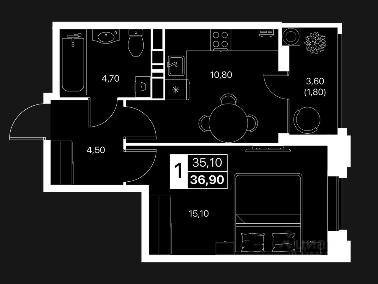 Общая площадь36,9 м2
