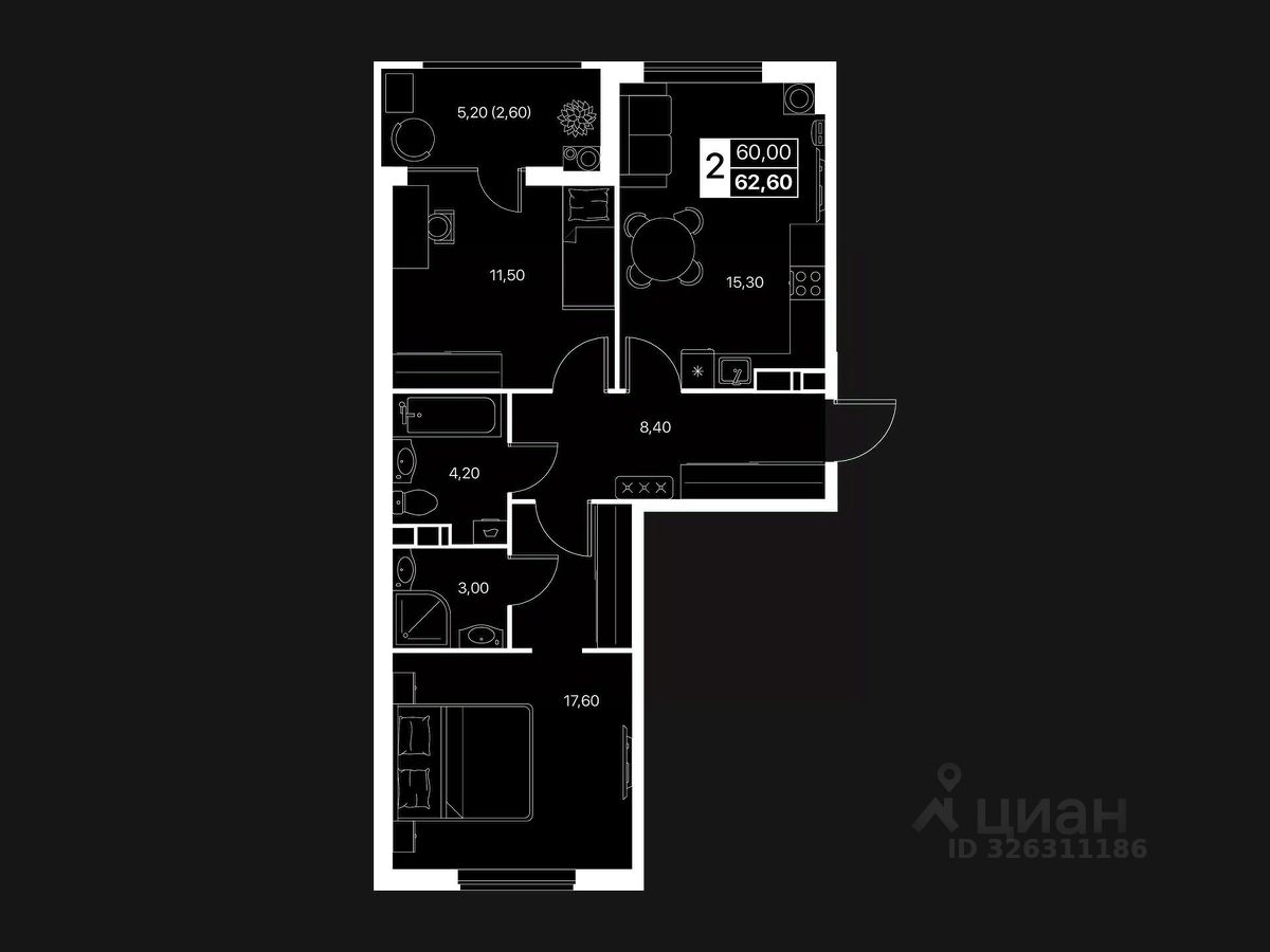 Общая площадь62,6 м2