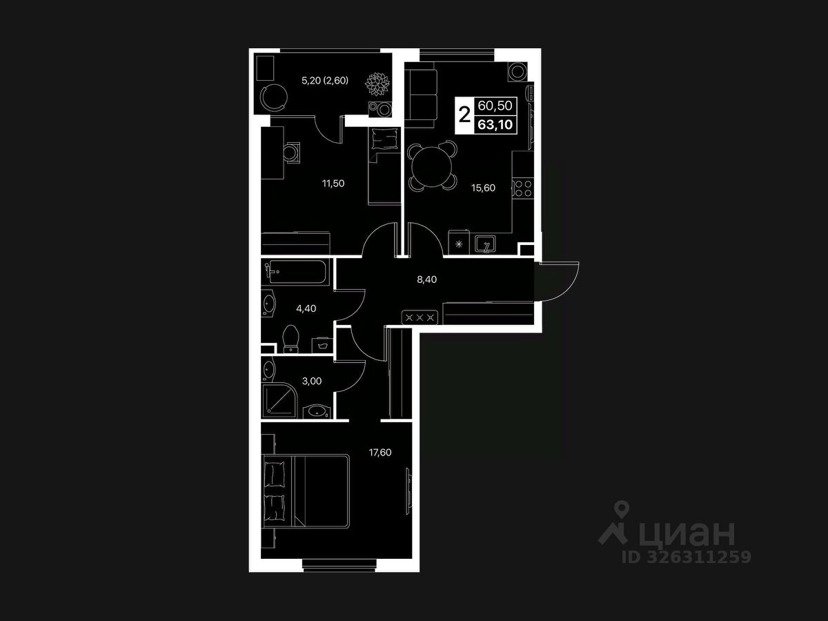 ДВУХКОМНАТНАЯ КВАРТИРА Идеальный формат для семьи или тех, кто ценит пространство: — Большая кухня-гостиная — Отдельная спальня — Возможность выделить рабочую зону — Тишина, тепло, удобная планировка — Большие окна и много света