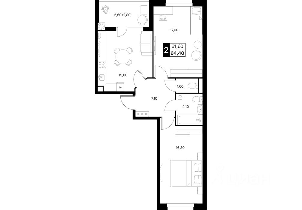 Общая площадь64,4 м2