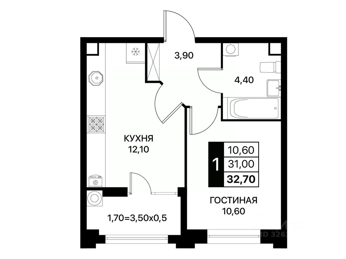 Общая площадь32,7 м2