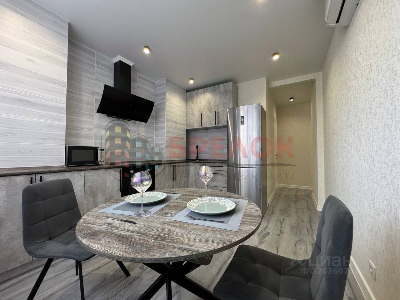 Выполнен качественный ремонт, установлена кухня со встроенной техникой - холодильник, варочная панель, духовой шкаф, микроволновая печь. Так же установлена сплит/система, обеденный стол