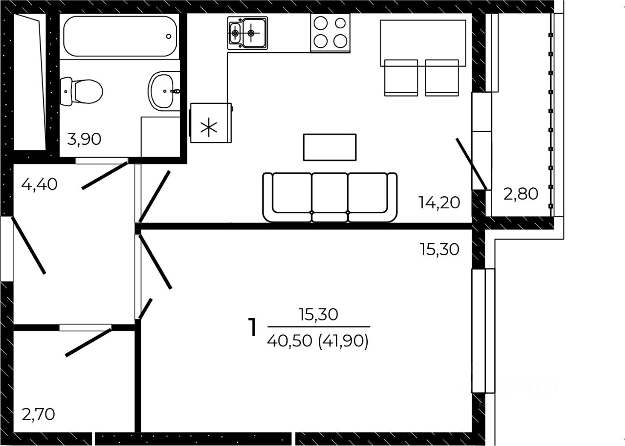 Общая площадь41,9 м2