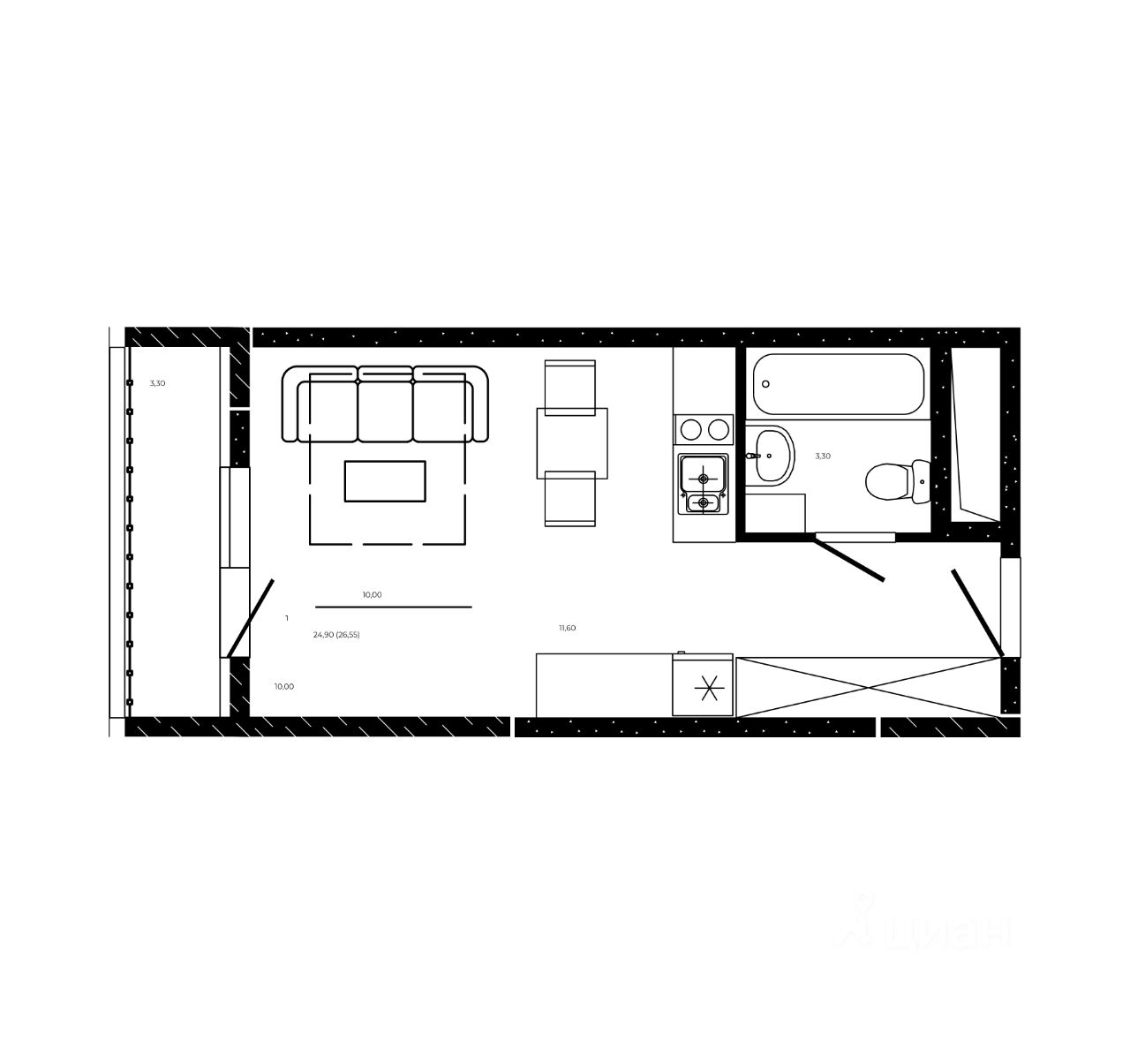 Общая площадь26,55 м2