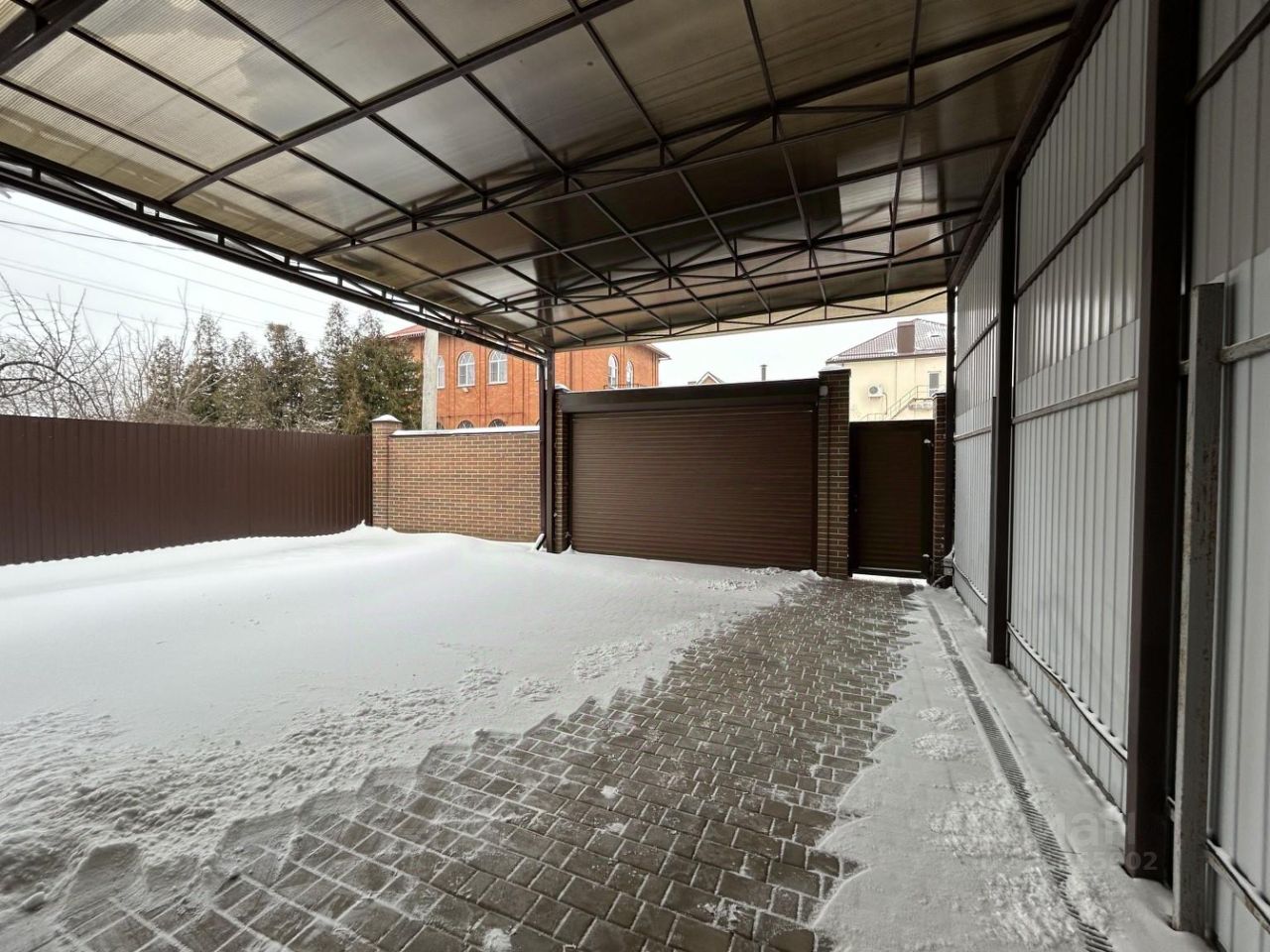 Ухоженный двор, вымощенный плиткой, создает аккуратное и эстетичное пространство. Для ваше-го автомобиля подготовлены асфальтированный подъезд и удобный въезд на площадку под два авто, защищенный навесом. Перед домом имеется свободная земля для садовдства.