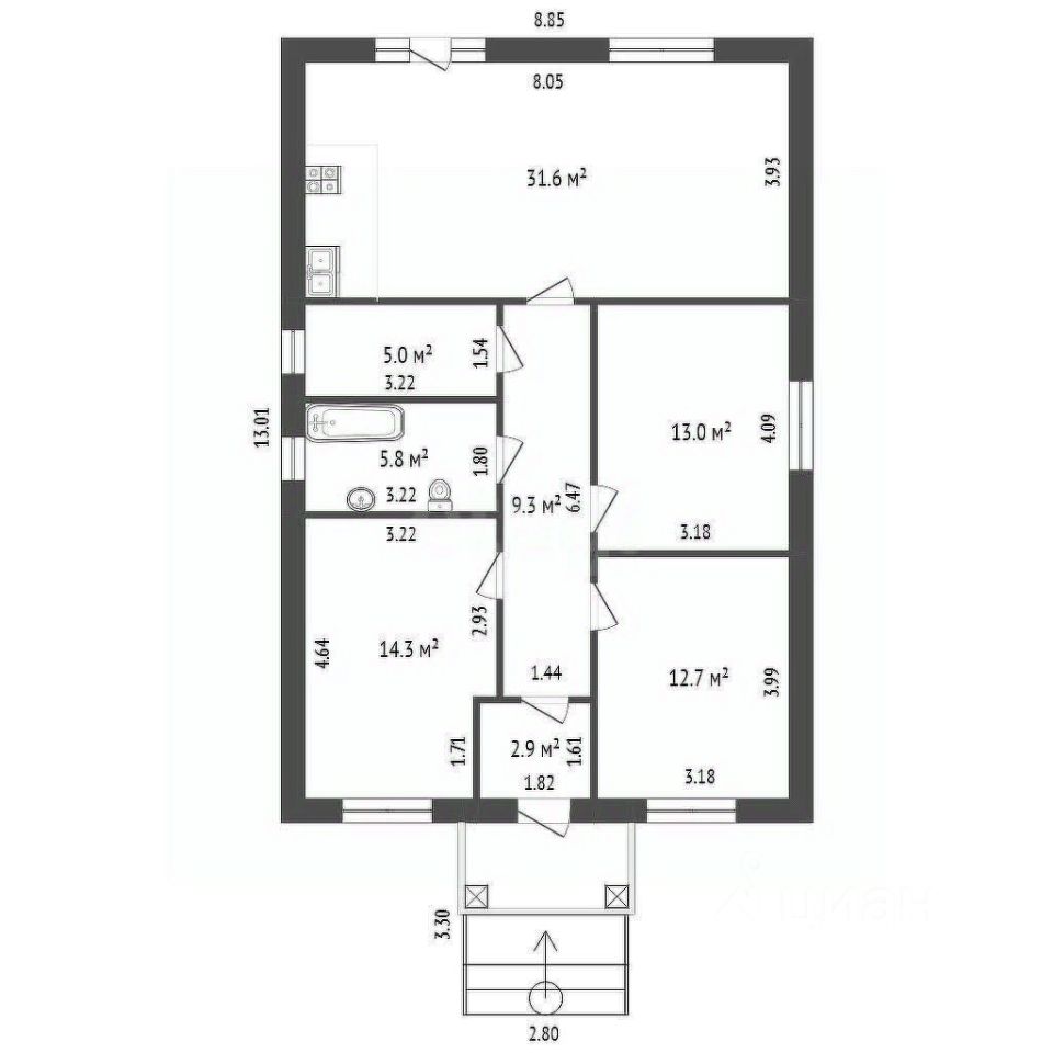 В доме предусмотрены три просторные комнаты, что позволяет организовать уютное пространство для всей семьи. Построенный в 2024 году из качественного кирпича, он гарантирует надежность и долговечность. Состояние — под чистовую отделку, что дает вам возможность реализовать свои дизайнерские идеи и создать идеальный интерьер.