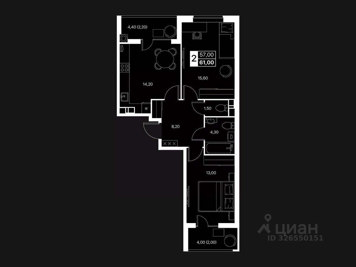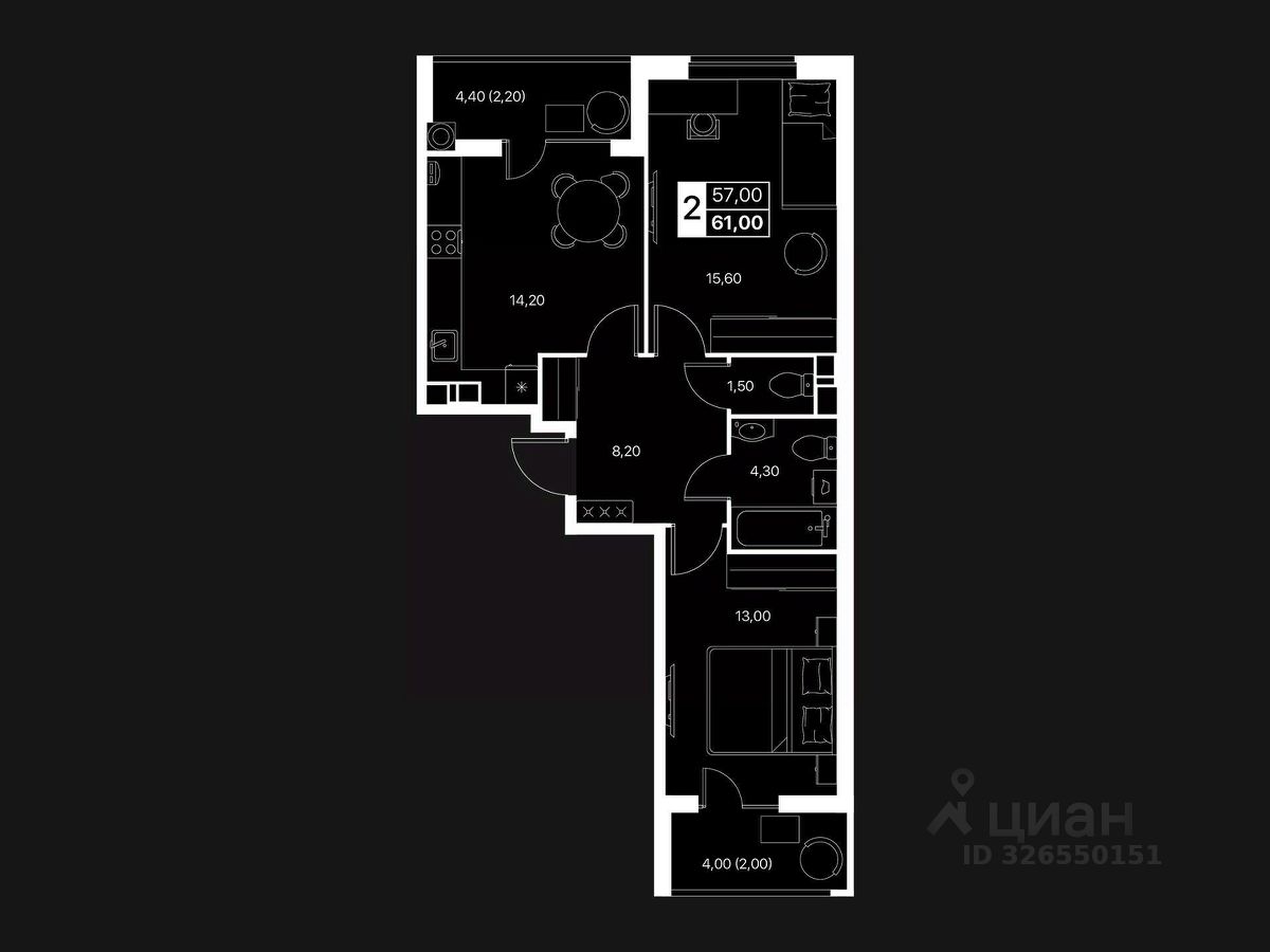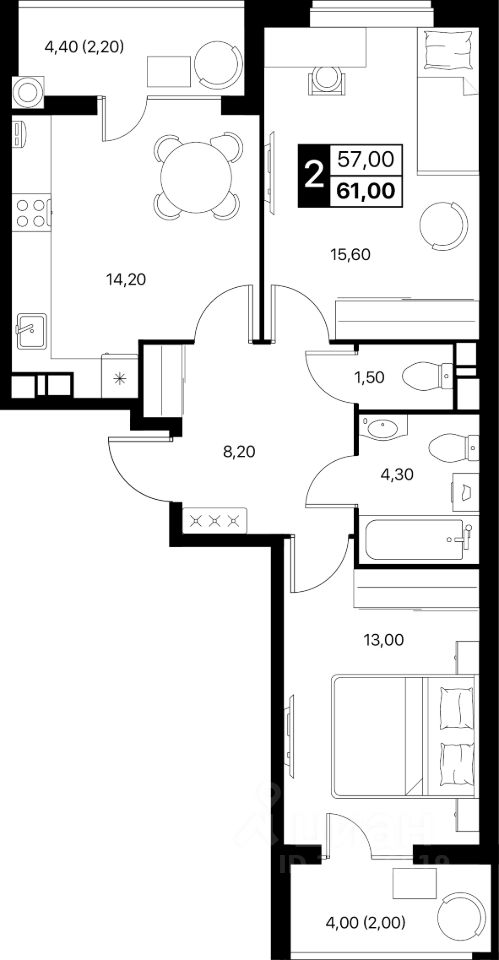 Общая площадь61 м2