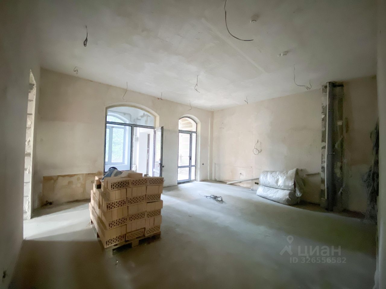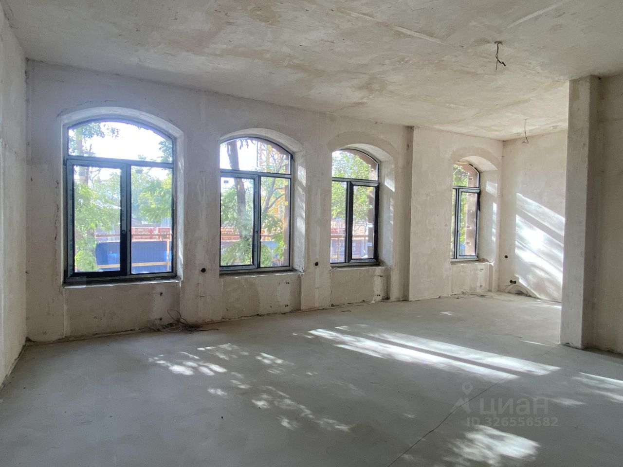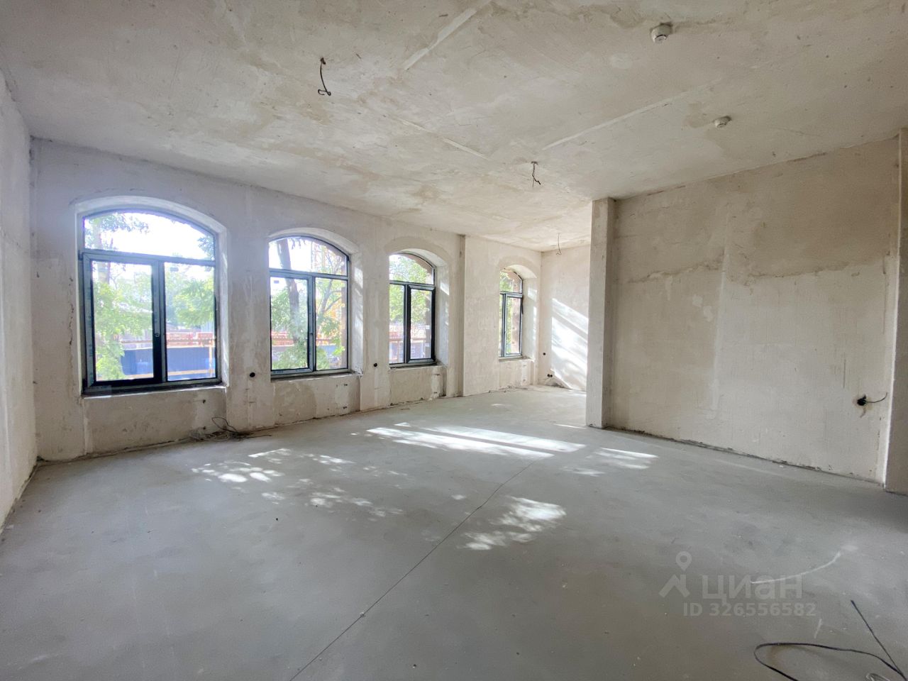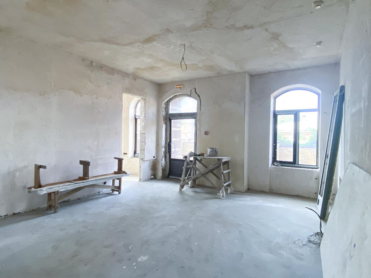 Помещение имеет свободную планировку по проекту, но для разделения на несколько кабинетов установили перегородки (при желании можно убрать). Выполнена черновая отделка стен, электроразводка.