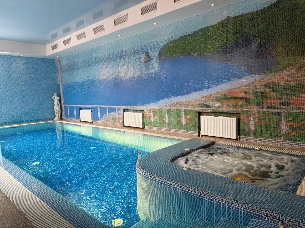 Ключевой особенностью объекта является наличие внутри частного переливного бассейна с функцией джакузи и хамама, что создает готовую зону для отдыха и релаксации. Территория участка благоустроена, подъездная дорога асфальтирована.