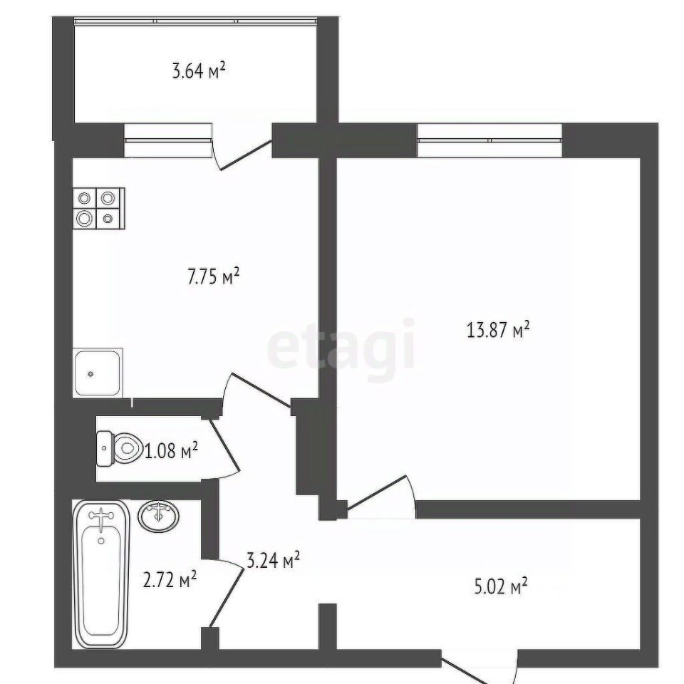Совмещенный санузел, евро-ремонт и вся встроенная мебель — кухня, системы хранения.
