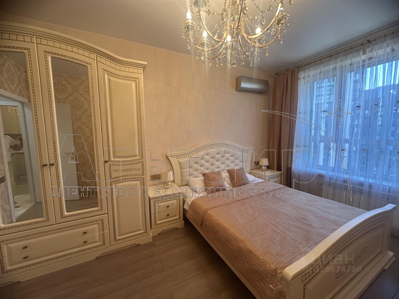Для вашего комфортного проживания квартира обустроена угловой кухней с фрезерованными фасадами, встраиваемой бытовой техникой, сплитами, диван удобный, обеденная группа, 2 шкафа-витрины под бокалы, комод под ТВ, спальный гарнитур с красивой кроватью ( изголовье инкрустировано камнями).