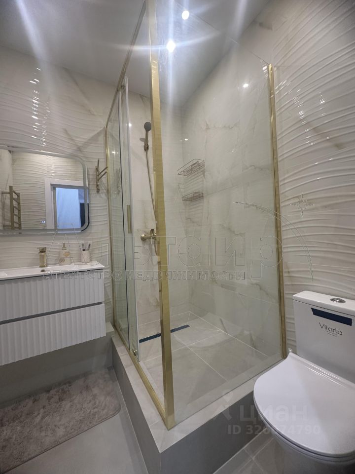 Ремонт продуман до мелочей, красивые межкомнатные двери, коллекционные обои на стенах, натяжные потолки, плитка в совмещении санузел к, витражное остекление на балконе.