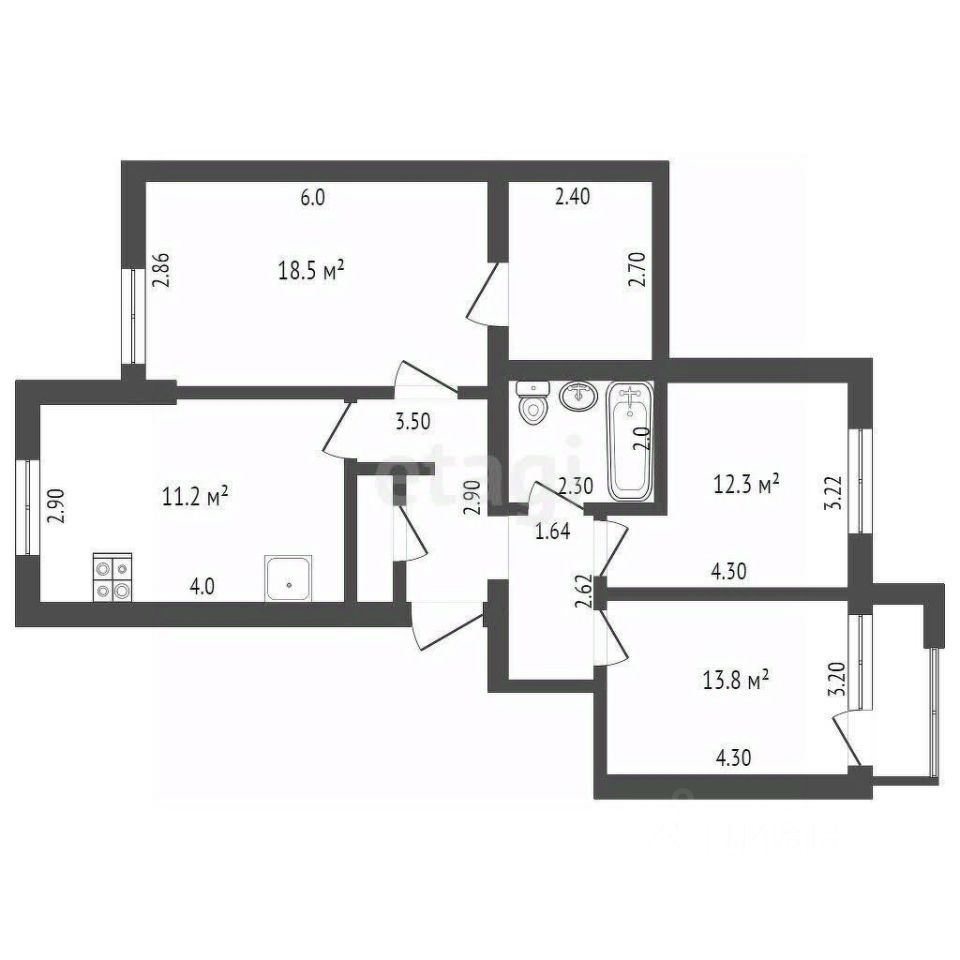 Квартира без обременений и долгов по коммунальным платежам.